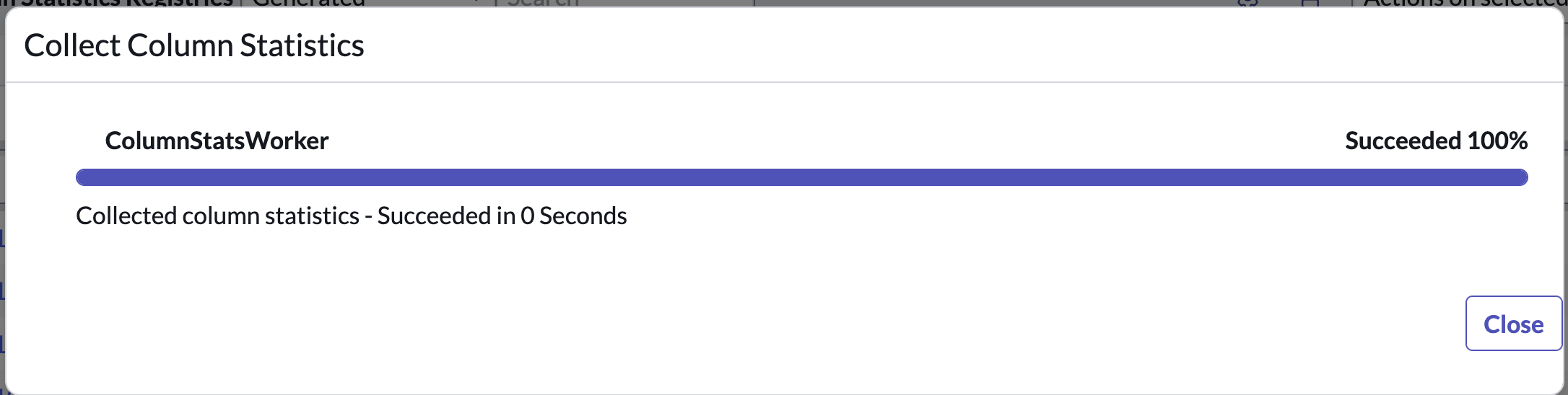 sys_column_statstable to view the collected results. Depending on your table size, this could take some time for the progress worker to complete.