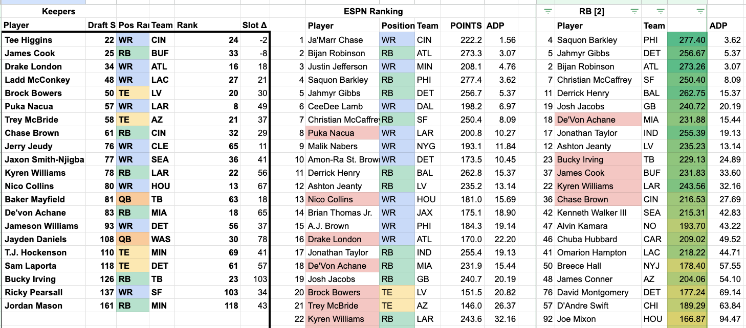 The result? A custom fantasy football dashboard that accounts for our unique league settings and keeper situation.